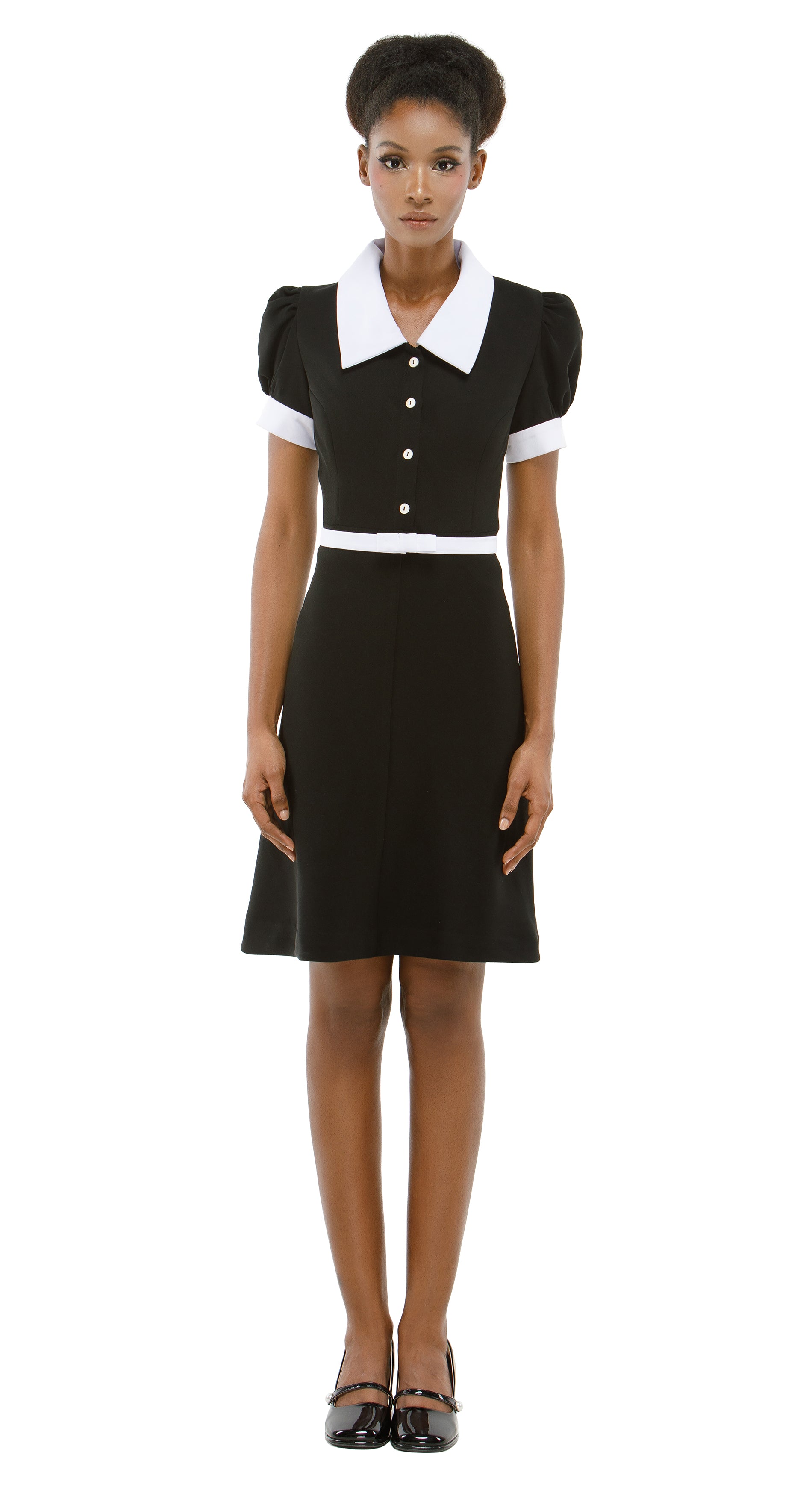 Playful, charming, and effortlessly retro, this work-or-play dress is crafted in classic nautical colors, perfect for versatile styling. Featuring a slightly flared skirt and capped puffed sleeves, it creates a flattering silhouette while keeping a youthful, mod-inspired appeal.